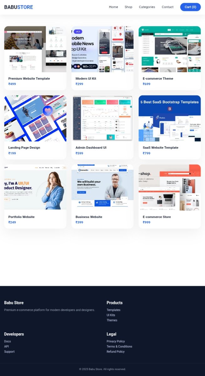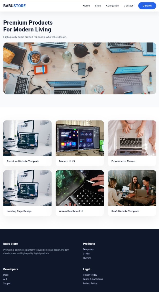 Premium E-commerce Website Template Our Premium E-commerce Website Template is designed to create a modern, clean, and trustworthy online store. It delivers a smooth shopping experience across mobile, tablet, and desktop devices with a fully responsive and elegant layout. The home page focuses on clear product presentation, easy navigation, and strong call-to-action sections that guide customers from browsing to checkout. Built for speed, usability, and conversions, this template is perfect for selling digital products, physical goods, or services with a professional brand presence.