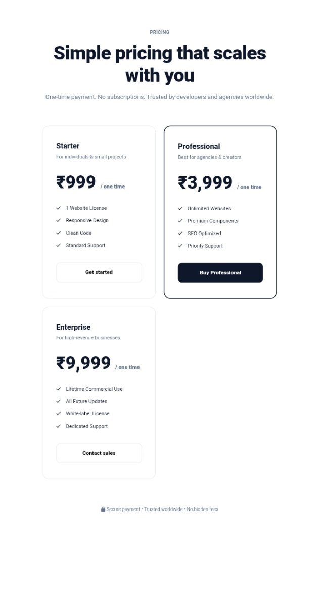 This Pricing Website Template is designed with a clean, modern, and premium layout. Perfect for SaaS, startups, and digital services, it highlights pricing plans clearly with a responsive design, fast loading, and user-friendly structure. Easy to customize and optimized for conversions.
